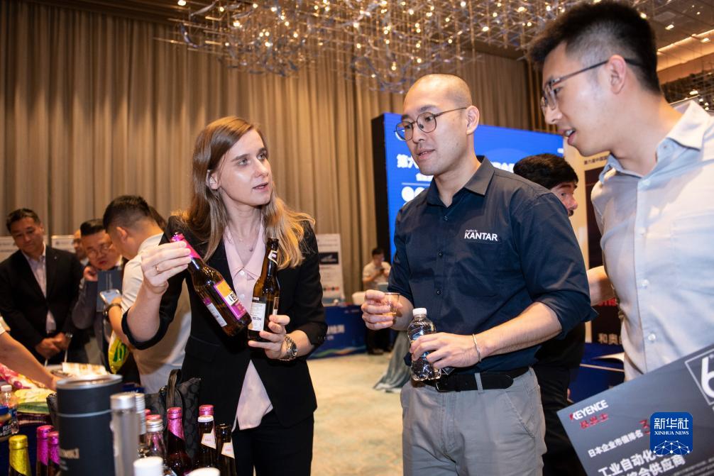 8月29日,在深圳举行的进博会展前供需对接活动上,波兰投资贸易局的工作人员(左前)向采购商展示风味啤酒。