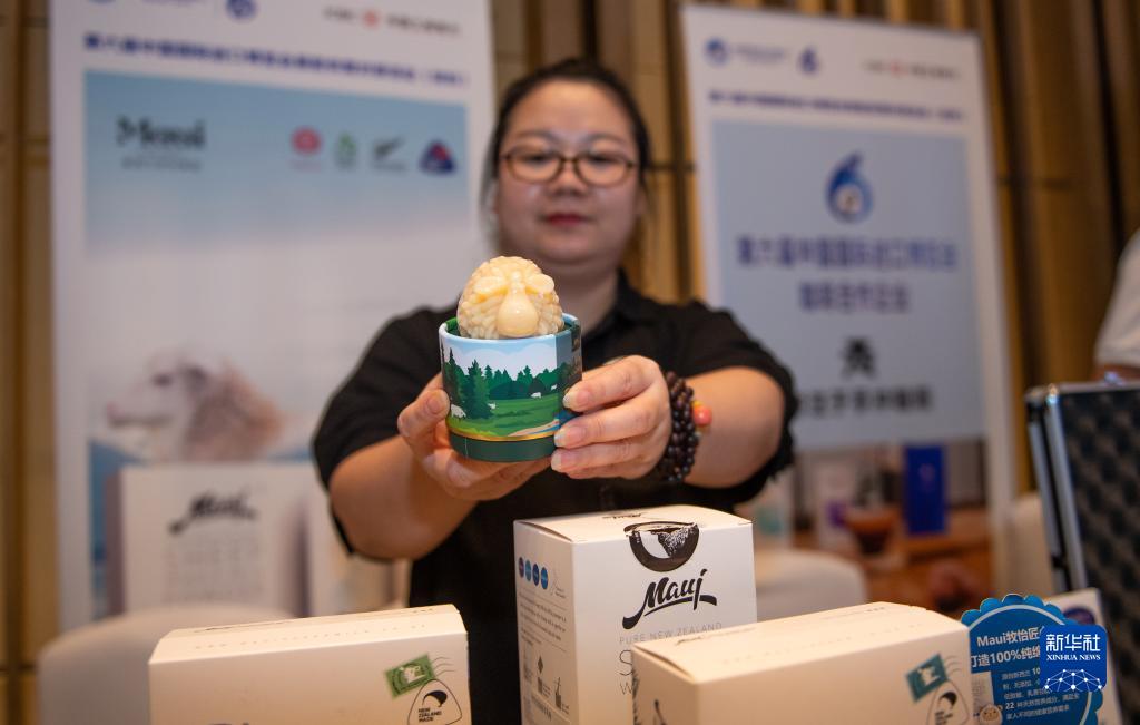 8月29日,在深圳举行的进博会展前供需对接活动上,参展商工作人员展示羊奶皂。