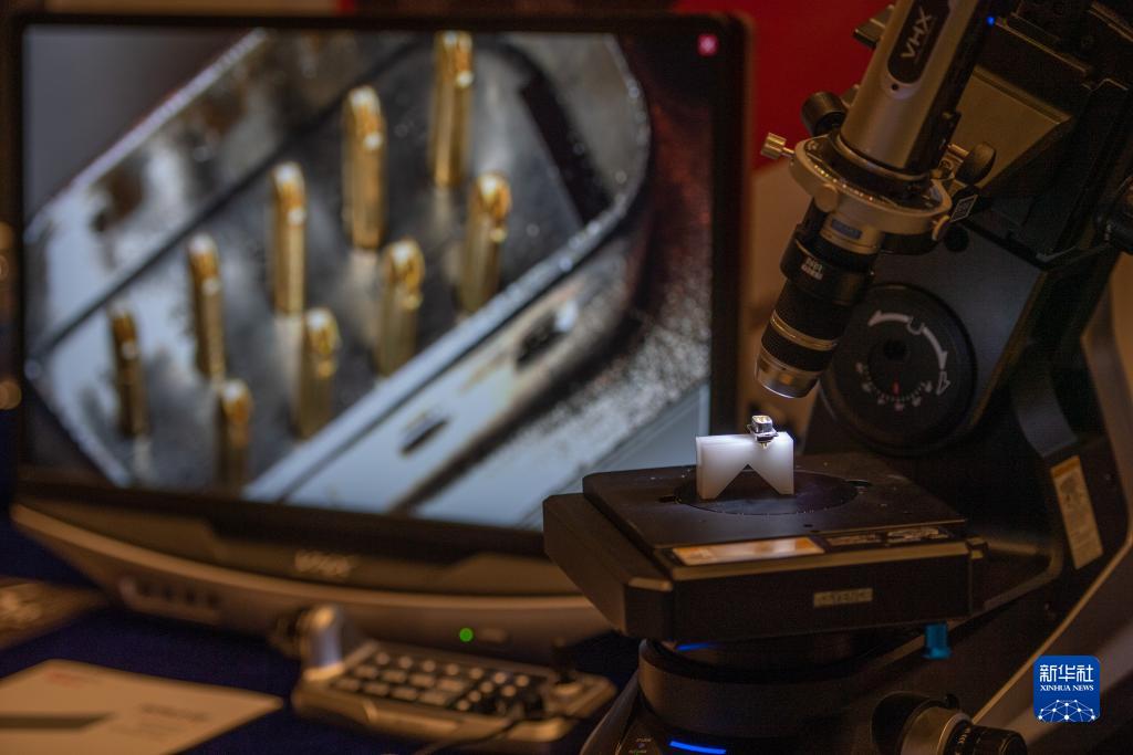 8月29日在深圳拍摄的进博会展前供需对接活动上参展商展示的一款显微系统。