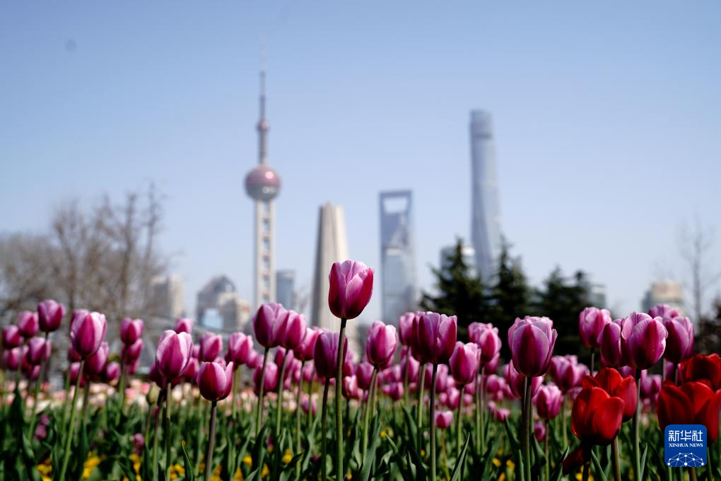 3月20日在上海外滩拍摄的郁金香。新华社记者 张建松 摄