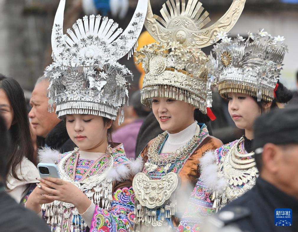 苗族姑娘参加柳州市融水苗族自治县香粉乡十六古龙坡会(2月13日摄)。新华社记者 黄孝邦 摄