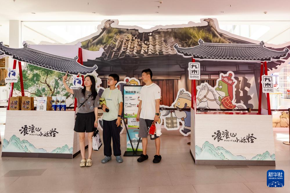 8月17日在浙江省嘉兴市南湖区一家影城拍摄的《浪浪山小妖怪》文创产品。