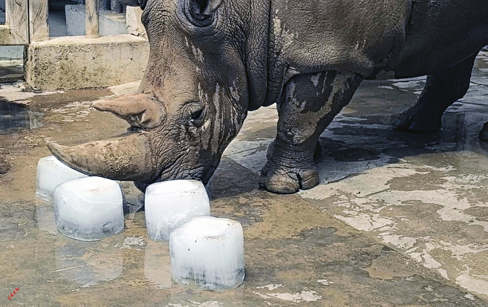15日,太原動物園啟動防暑降溫預案,為園內大象、犀牛等大型動物特別制作了“冰蛋糕”。山西晚報·山河+ 記者 胡續光 實習生 郝震凌 攝