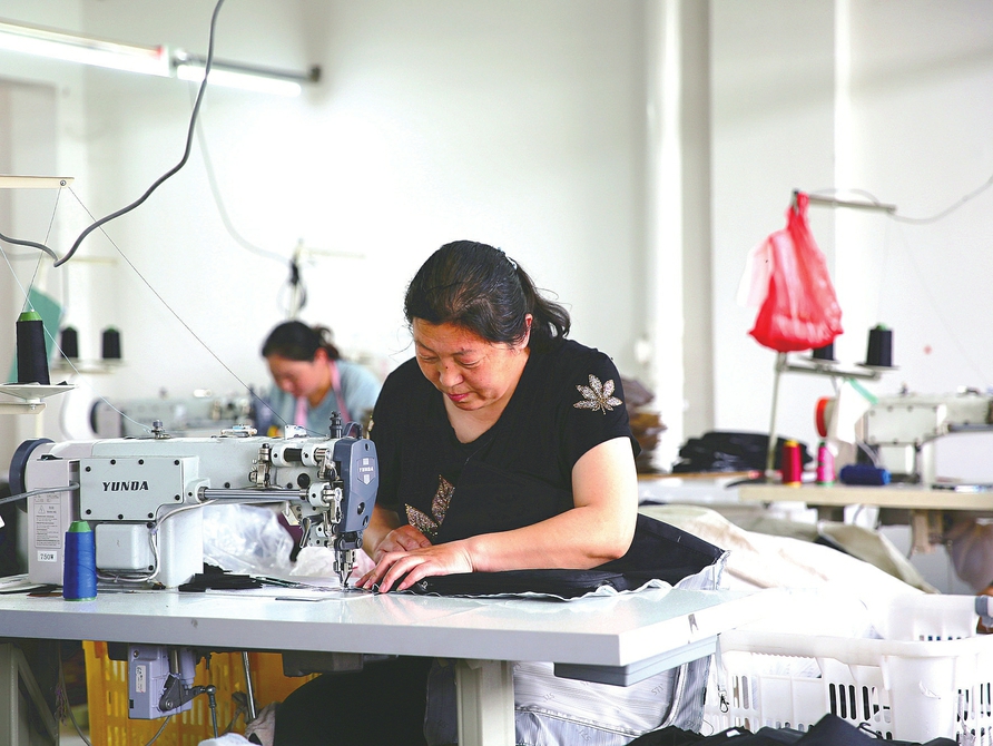 7月7日,方山縣圪洞鎮二期易地搬遷安置區內的幫扶車間裡井然有序,員工們在流水線上熟練地趕制衣服訂單。據了解,該幫扶車間可吸納近200名婦女就地就業,年收入可達1.5萬元,實現了家門口就業,家門口賺錢。