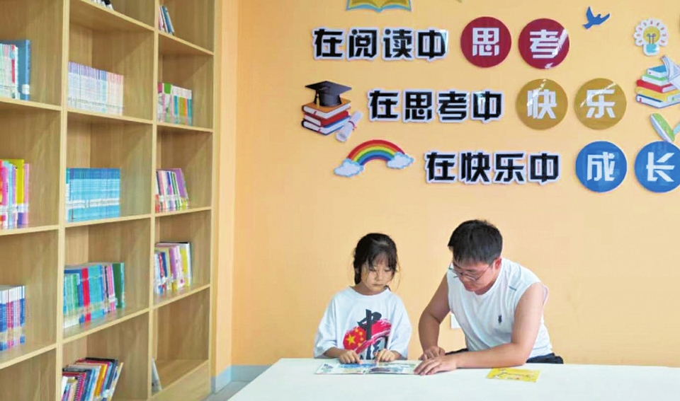 方山縣圖書館少兒閱讀區的親子閱讀。本報記者高樺攝
