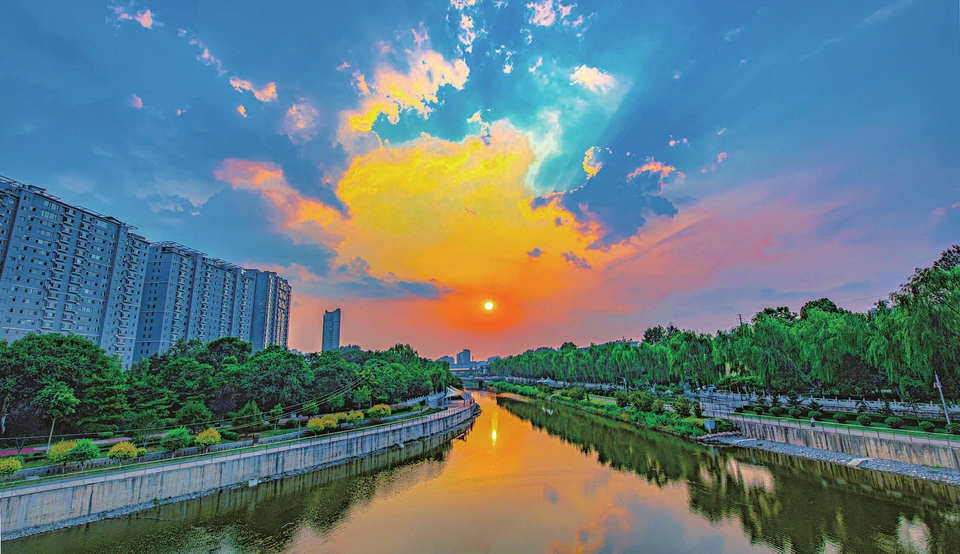7月24日,長治市潞州區“三河一渠”環城水系石子河畔,碧波與彩霞交相輝映,令人心醉。近年來,該市持續推進綜合治理,沿河景觀品質大大提升。
