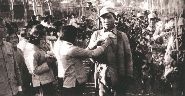 百團大戰勝利后,人民群眾歡迎參戰歸來的英雄。