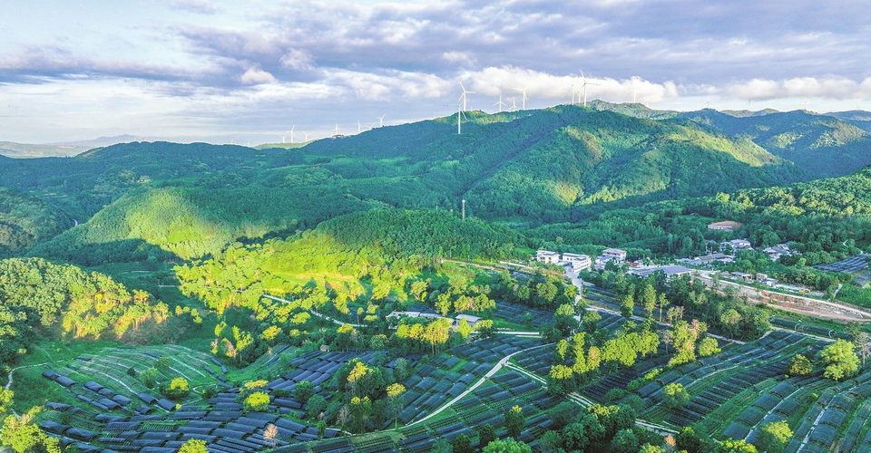 7月25日,藍天白雲下的夏縣泗交鎮境內,群山、梯田、森林與民居交相輝映,構成一幅生機盎然的綠色生態畫卷。