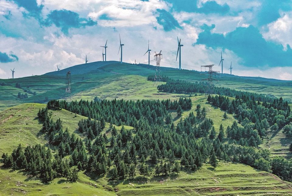 近年來,寧武縣在大力推進生態保護的同時,積極探索綠色能源發展道路。目前,該縣已建成多個光伏電站和風力發電場,實現了生態與經濟雙贏。圖為7月25日在寧武縣達達庄村拍攝的鏡頭。