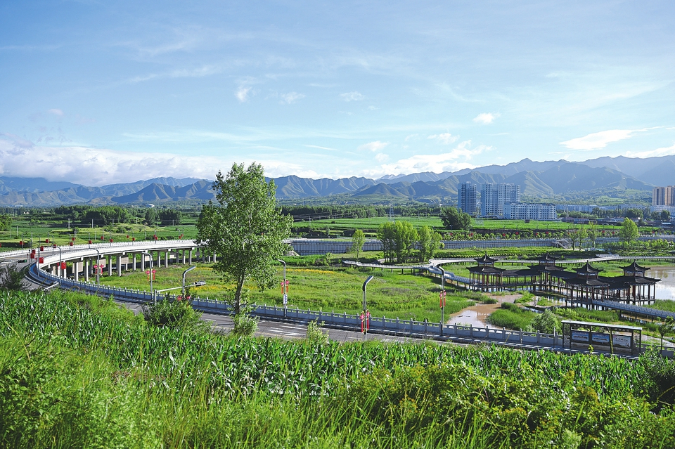 近年來,五台縣圍繞瀛湖、濕地、玉軒、文昌山等公園新建環城路,並在各個路段上因地建設山水橋梁、公園游園、健身廣場、步道長廊等,勾畫出了一幅“路在景中、景在城中”的城建立體圖。圖為該縣北城區生態美景。
