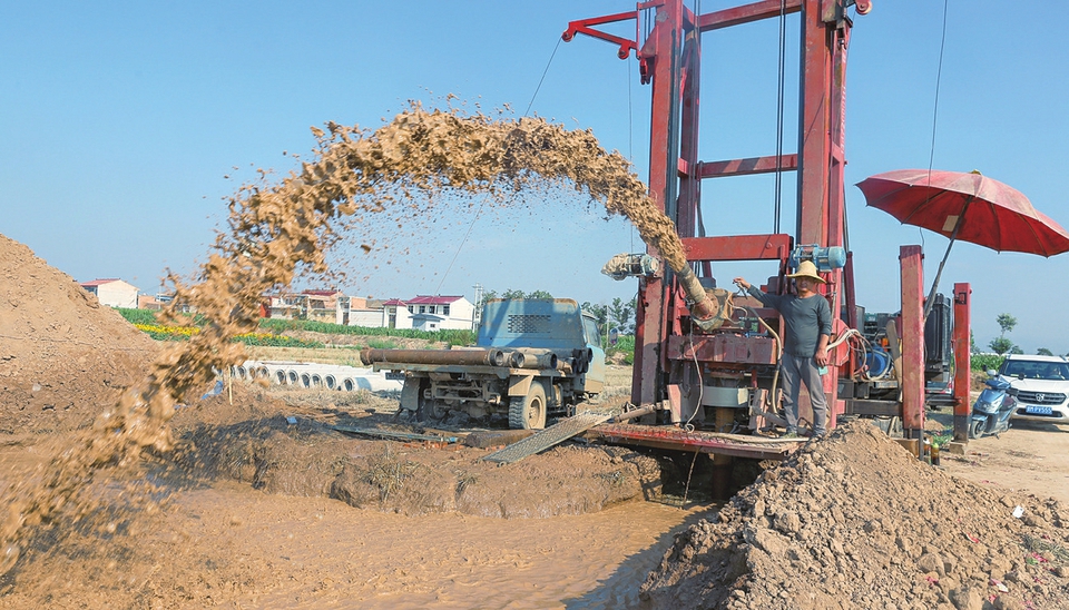 7月30日,運城市夏縣水頭鎮東張村,鑽井隊工人正在進行鑽打深井作業。近年來,水頭鎮依托當地資源,採取多種舉措,動員社會力量“興”水,一大批“集體井”“聯戶井”應運而生,為農業豐產豐收打下堅實基礎。