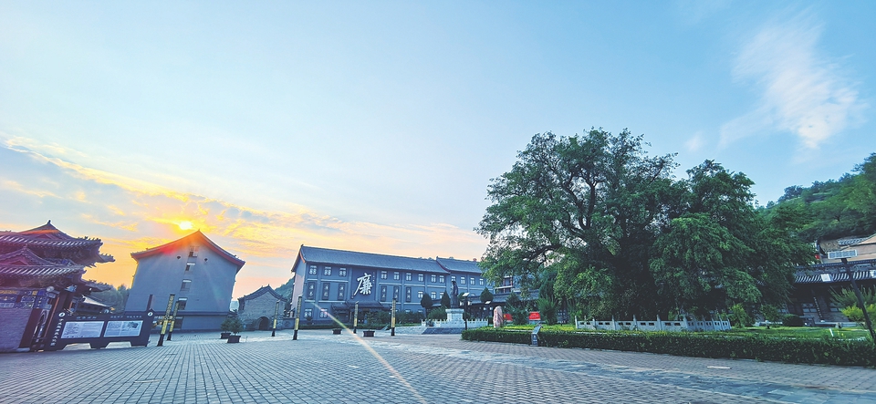 走進園內,一面充滿藝術氣息的牆繪映入眼帘。畫面中,一條栩栩如生的龍和一條金魚隔拱門相望,巧妙呈現“魚躍龍門”的意象﹔門內,於成龍遙望山河的背影巍然屹立,背景則是盛開的蓮花與翠綠的蓮葉,整個畫面生機盎然。走到城牆背后,與正面形成時空呼應,畫中於成龍從歷史長河中堅定走來,兩側“孝”和“廉”二字赫然在目,寄托了對於成龍廉政精神的傳承與發揚。