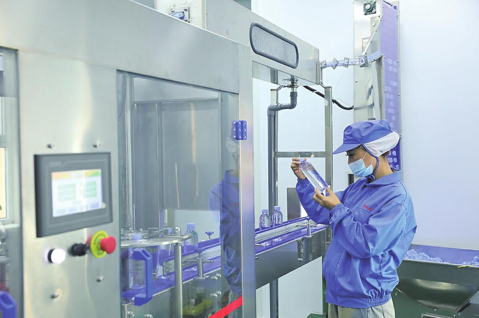 純淨水廠工作人員正在檢測瓶裝水。