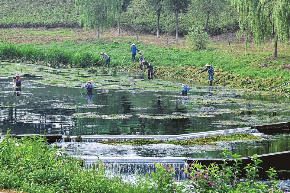 8月13日,在長治市“三河一渠”的石子河西段,工作人員正在開展河道清淤工作,旨在進一步增強河道行洪能力,確保汛期安全。