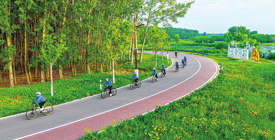 8月15日,長治市潞州區堠北庄街道張祖村,騎行愛好者在太行一號旅游公路長治段騎行,享受運動快樂。近年來,當地加大漳澤湖生態修復與保護綜合治理,構建水城共融城市空間新格局,不斷提升市民獲得感、幸福感。