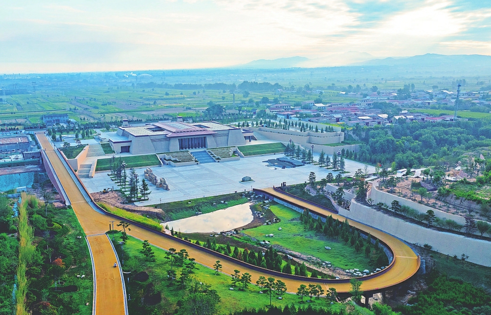 初秋時節,襄汾縣陶寺遺址博物館在晨曦映照下顯得更加壯美而靜謐,與周邊的山巒、田野、村庄、綠植、步道等相得益彰,呈現出一幅融合歷史韻味與自然生態之美的畫卷。