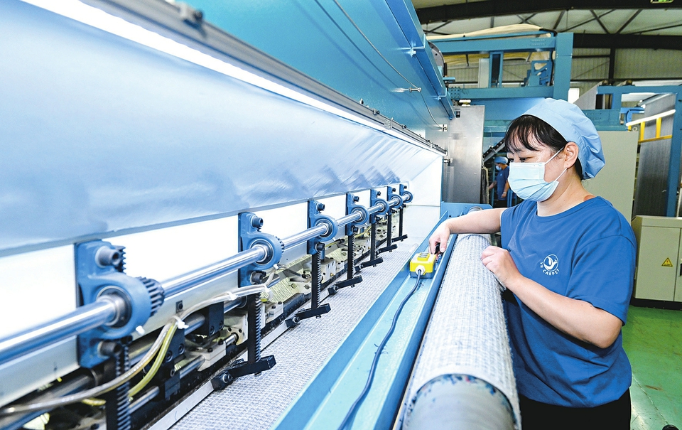 8月19日,長治雅瑞地毯有限公司生產車間,工人正操作智能設備傳送地毯。近期,該公司引入PE生產線,推動了傳統制造企業向“智”向“新”的產業升級。