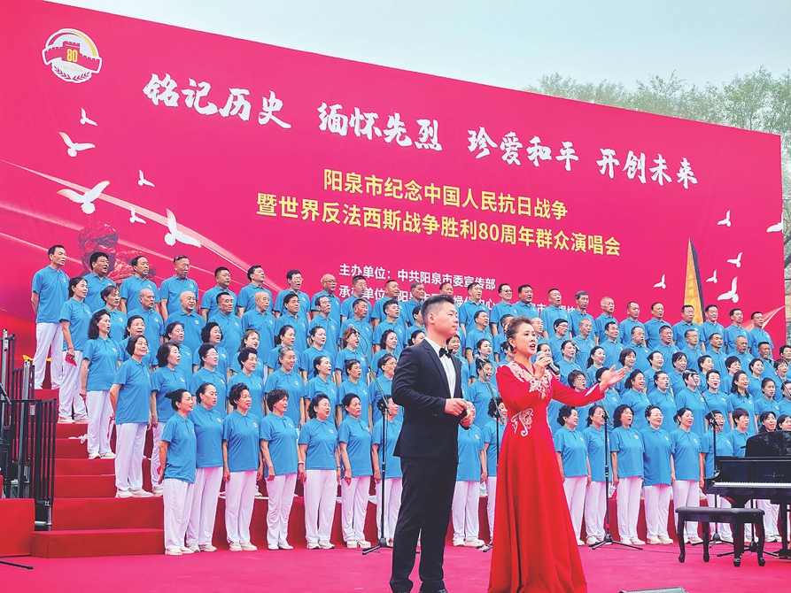 陽泉市紀念中國人民抗日戰爭暨世界反法西斯戰爭勝利80周年群眾演唱會在百團大戰紀念碑前舉行。本報記者郭強攝