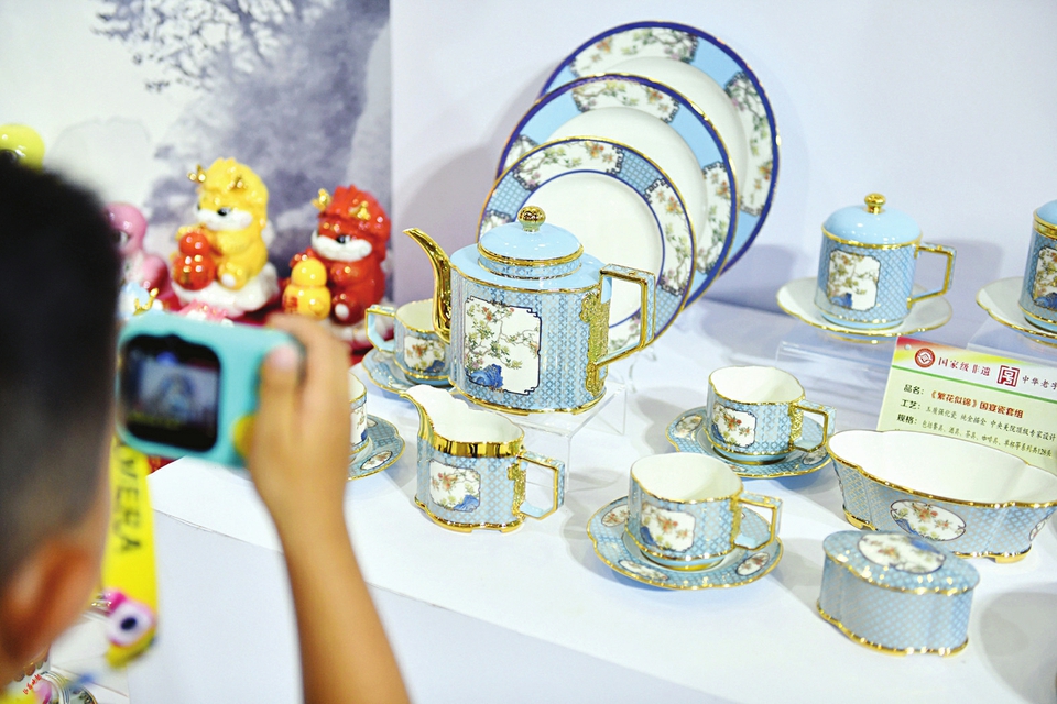除新品外,展區還帶來了《前程似錦》大擺盤、黑釉紅綠彩將軍罐、《富貴牡丹》天球瓶等傳統紅綠彩瓷工藝品,以及多款兼具實用性與文化感的文創產品,滿足不同市民的觀賞與收藏需求。