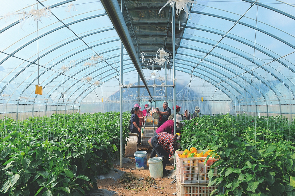 採摘師傅們正在大棚內採摘彩椒。本報記者劉成根攝