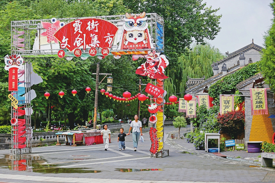 8月24日,游人在汾陽市賈家庄村內游玩。8月21日至30日,賈家庄第25屆鄉村文化旅游節舉行,游客在體驗非遺、嘗鮮美食中,共赴一場文化盛宴。