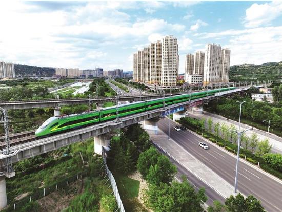 近日,“綠巨人”復興號動車穿梭於呂梁市區段鐵路橋,流線型車身在陽光下熠熠生輝,正奔赴呂梁站。現代交通動脈與城市建筑、綠樹碧水交織,勾勒出發展活力滿溢的城市圖景。