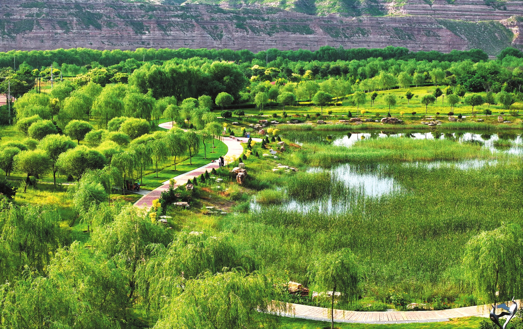 朔州市區七裡河畔,風景如畫,美不勝收。李日明 史振宇攝 朔州是煤電能源大市,工業固廢資源豐富,每年產生4000多萬噸煤矸石,此前不僅佔用大片土地,還污染土壤和地下水。
