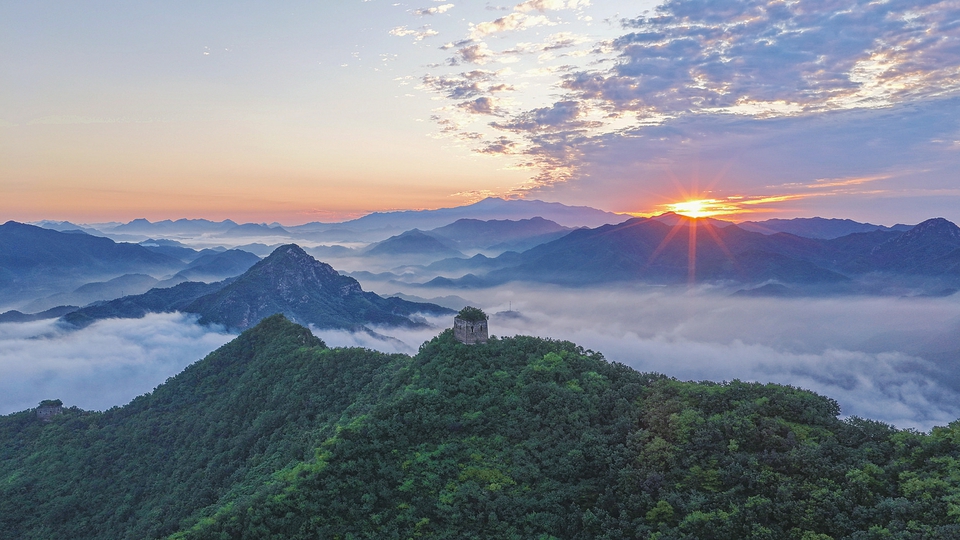 7月21日,在河北省遷西縣金廠峪鎮拍攝的榆木嶺長城。當日清晨,雨后初霽。河北省遷西縣金廠峪鎮的榆木嶺雲海涌動,古長城在雲海中若隱若現,壯美如畫。