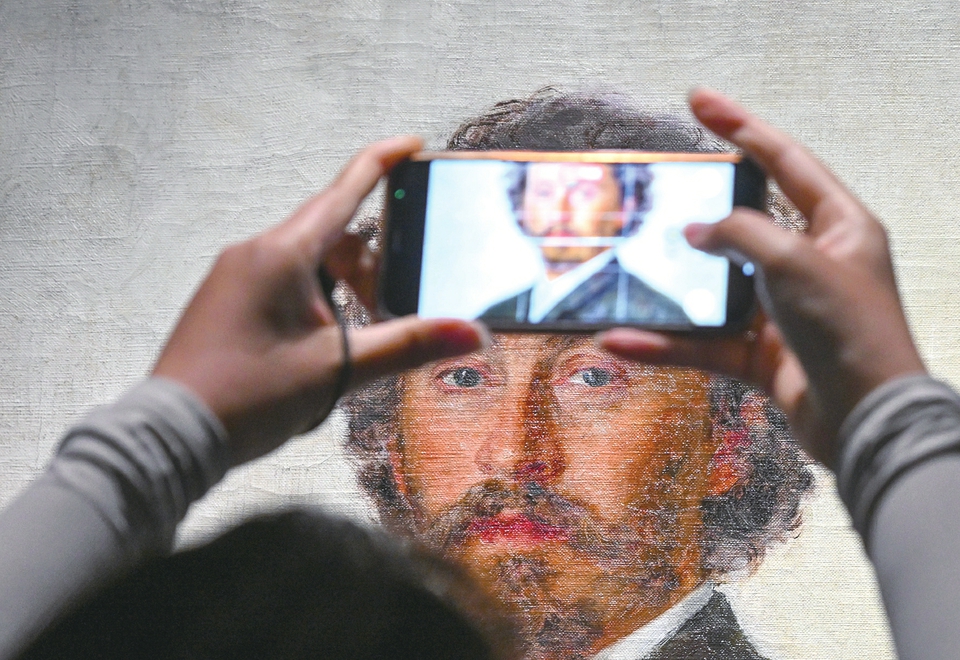 7月22日,一名記者拍攝列賓《自畫像》。當日,作為2024—2025“中俄文化年”的重點項目之一的“涅瓦河畔的遐思——列賓藝術特展”開幕式在北京中國國家博物館舉行。
