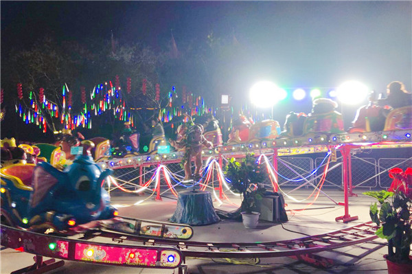 待到夜幕降臨,一場浪漫的燈光秀表演,為廟會增添了一道靚麗的風景線,到處一派燈火輝煌的熱鬧景象。市民李景芳對記者說:“我們每年都會帶著兩個孩子來堯廟逛廟會,賞花燈,看民俗,感受傳統文化,還有一些娛樂的兒童設施,帶給孩子歡樂,堯廟廟會讓市民盡享豐富多彩的民俗年。”