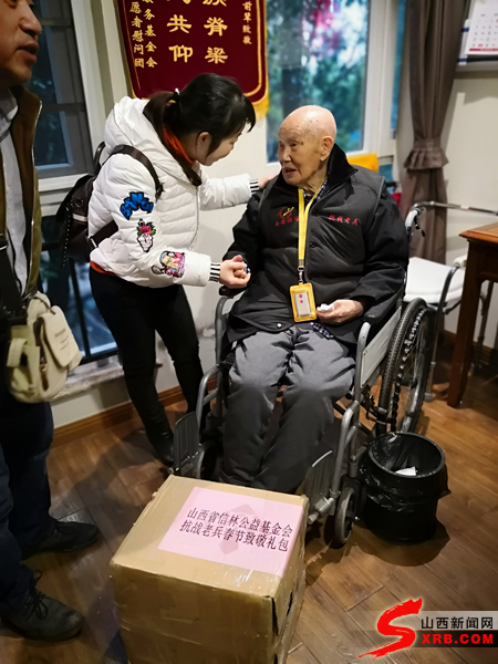這個春節期間,全省的志願者共為51位抗戰老兵送去春節祝福,還聯合外省志願者,為在省外居住的8名山西籍抗戰老兵送去祝福。“有慰問金、慰問信,有包括紙皮核桃、平遙牛肉、寧華府醋等特產在內的大禮包,還有剪紙擺件以及2019年‘國家記憶’挂歷。”飛雪飄零說,春節前后,有三名老兵去世,一名是他們節前慰問過的,另兩名是列入慰問名單還沒來得及去慰問的。