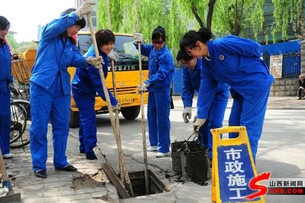 王潤梅工作所在的水道三組擔負著太原市最繁華、最低窪地段的一百多條街道、一萬多座下水井的清掏任務,每天的工作就是走在大街小巷,拿著專用工具把排水井裡的雜物清掏干淨。
