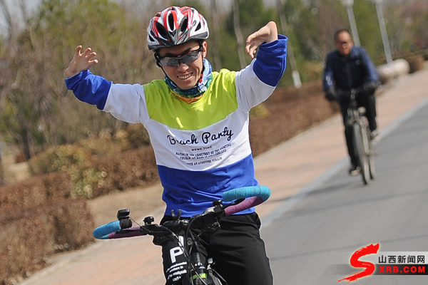 升入初中后,我要去迎新街上學,離家有一段路程,騎自行車上下學能省下不少時間。我的手掌和胳膊畸形,學騎自行車對我來說非常困難。不好用手控制車閘,我隻能用鞋底蹭地幫助剎車。不知道摔了多少個跟頭,磨爛了幾雙鞋子,我終於熟練掌握了騎車技術,現在我一有時間就參加騎行活動。打乒乓球也是我喜歡的運動方式,我曾在太原市殘疾人運動會中取得了乒乓球項目銅牌和田徑項目銀牌的好成績,運動讓我的生活更加豐富多彩。