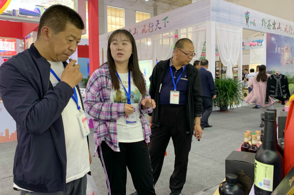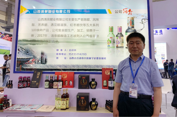參展商白潤泉帶著各類醋品亮相“青洽會”