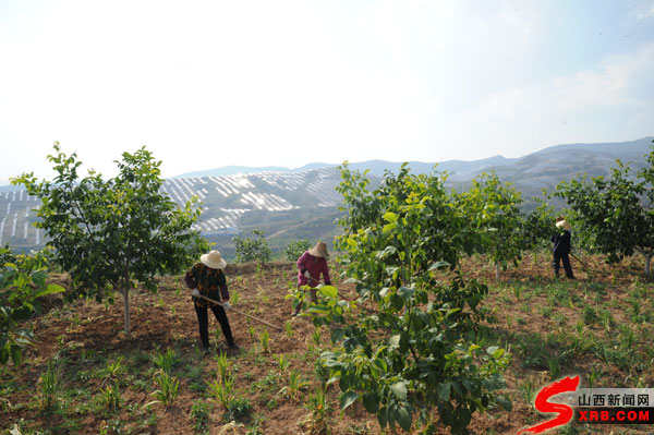 當年開始,連壁村黨支部積極響應左權發展核桃大縣,打造“一村一品”的號召,帶領全村留守的中老年人齊上陣,早出晚歸,大干苦干。“我們年齡大了,出去也找不下好活計,隻能種種地。村裡給大家找了好活路,我們願意跟著干!”生在連壁長在連壁,71歲的郭福蘭打心底不願意離開,看到生活有了新希望,他和村民們干勁十足,每天自帶干糧上山開荒。