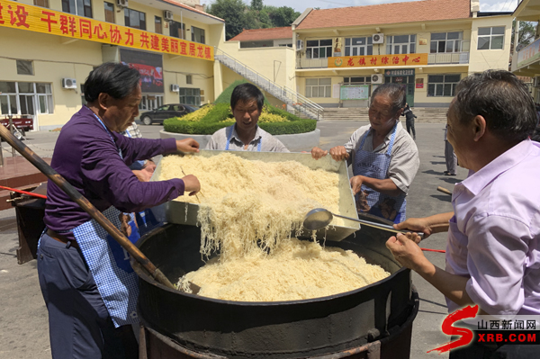 黨支部書記賈永平帶領村干部為60歲以上的村民做大鍋飯