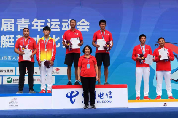 當日上午,二青會皮劃艇比賽在太原水上中心正式開賽。運動員們靈活操縱船槳,皮劃艇在廣闊的河面上劈波斬浪,向終點發起了沖刺,上演了一場你追我趕的青春大片。在體校組男子8公裡單人劃艇比賽中,來自福建代表隊的選手於岳斌以39:04.24的成績奪得了該項目冠軍。
