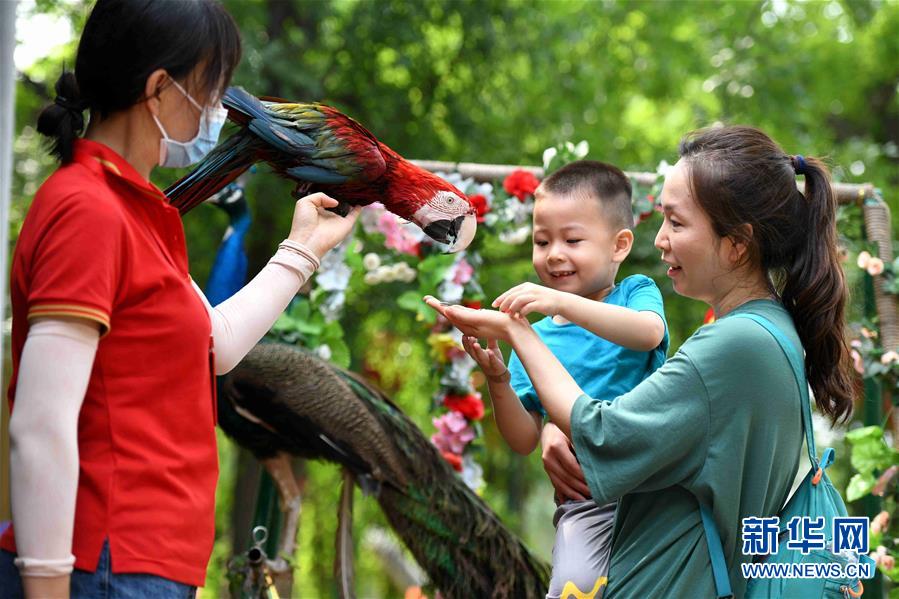 6月27日,一名小朋友在家人的陪伴下在石家庄市動物園裡游玩。 端午小長假期間,人們紛紛帶著孩子走出家門共享假期。 新華社發(許建園 攝)