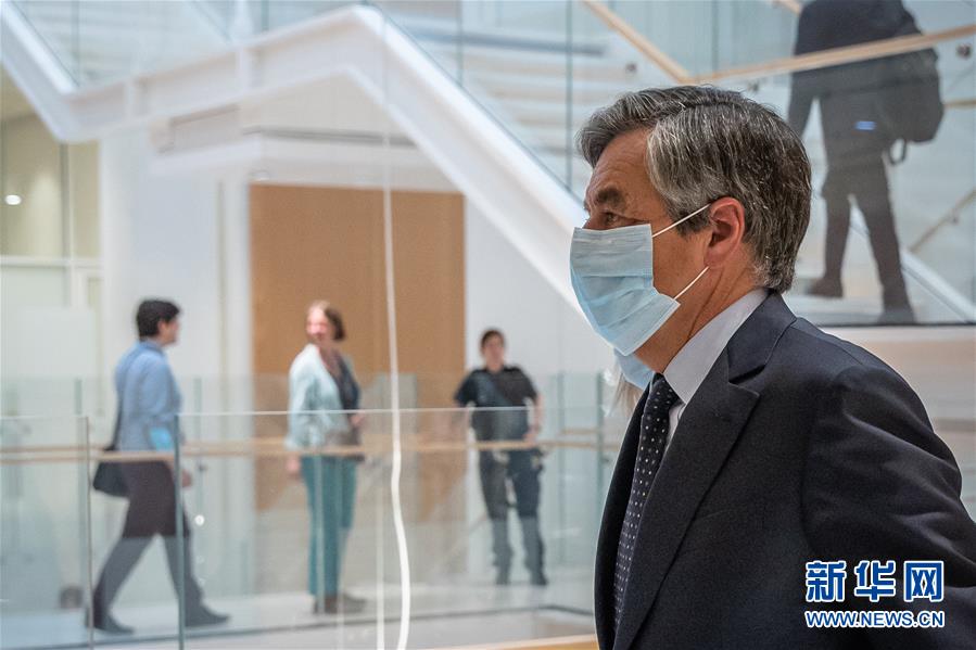 6月29日,在法國巴黎,法國前總理弗朗索瓦·菲永(前)在宣判后離開法院。 新華社發(奧雷利安·莫裡薩爾攝)