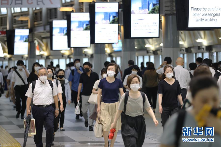 這是6月30日在日本東京品川車站內拍攝的下班時間的通勤人群。