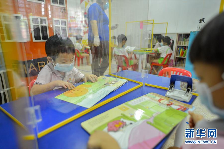 7月1日,一名小朋友在馬來西亞吉隆坡的一家幼兒園裡讀書。 馬來西亞1日進一步放寬疫情管控措施,在遵守相關措施的前提下,電影院、劇院、按摩中心、游泳池等設施重新開放,婚宴、生日宴等社會活動也可舉辦。幼兒園、托兒所等學前教育機構也已經復課。 新華社發(張紋綜攝)