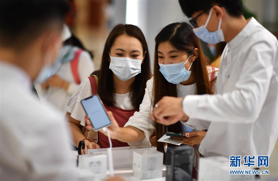 7月1日,顧客在海口日月廣場免稅店選購手機等電子消費產品。 當日,海南開始實施調整后的離島免稅購物政策。海南離島旅客每年每人免稅購物額度提高至10萬元,電子消費產品等7類新增商品開售。 新華社記者郭程攝