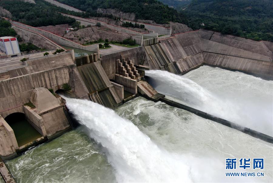 這是7月1日拍攝的黃河小浪底洪水調度運用、水庫泄洪的場景(無人機照片)。 新華社記者 朱祥 攝