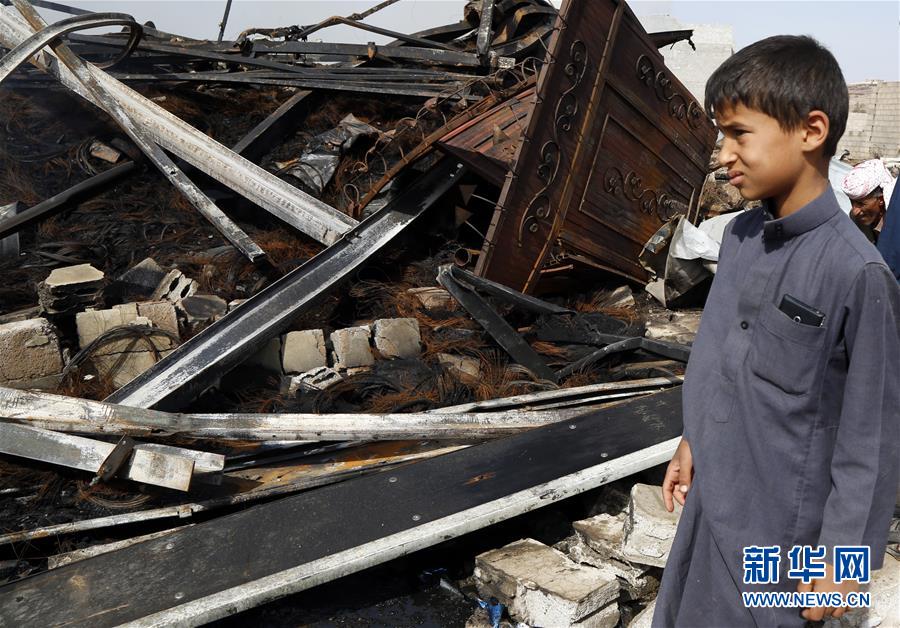 7月2月,一名男孩站在也門首都薩那一處遭空襲的倉庫廢墟旁。 據馬西拉電視台1日報道,也門首都薩那當天多次遭戰機空襲,胡塞武裝稱多國聯軍實施了空襲。 新華社發(穆罕默德攝)