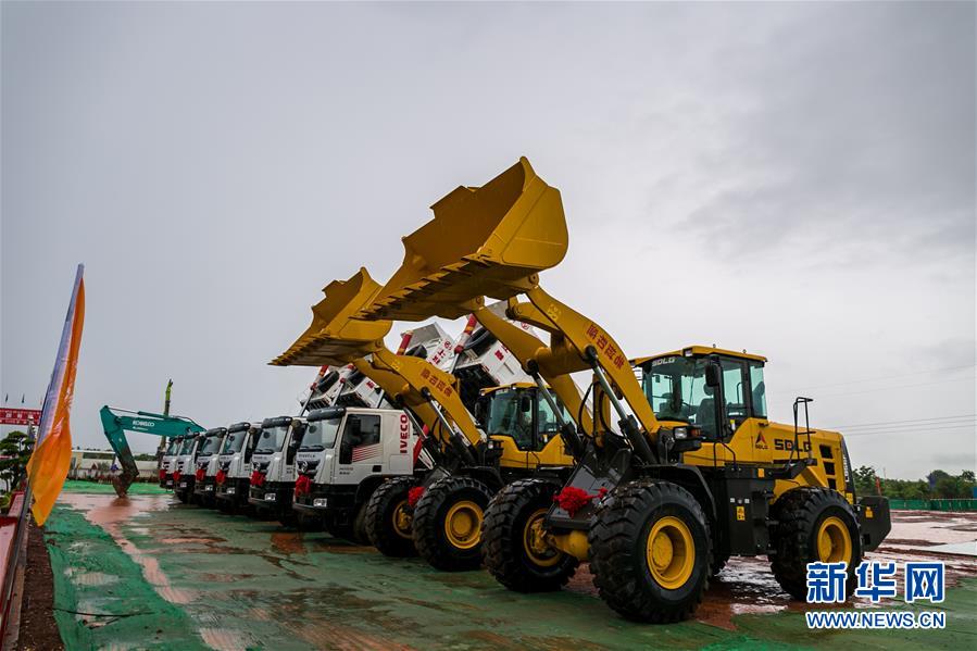 這是7月3日在老撾首都萬象市塞塔尼縣拍攝的中老鐵路萬象站建設使用的機械設備。 新華社發(凱喬攝)