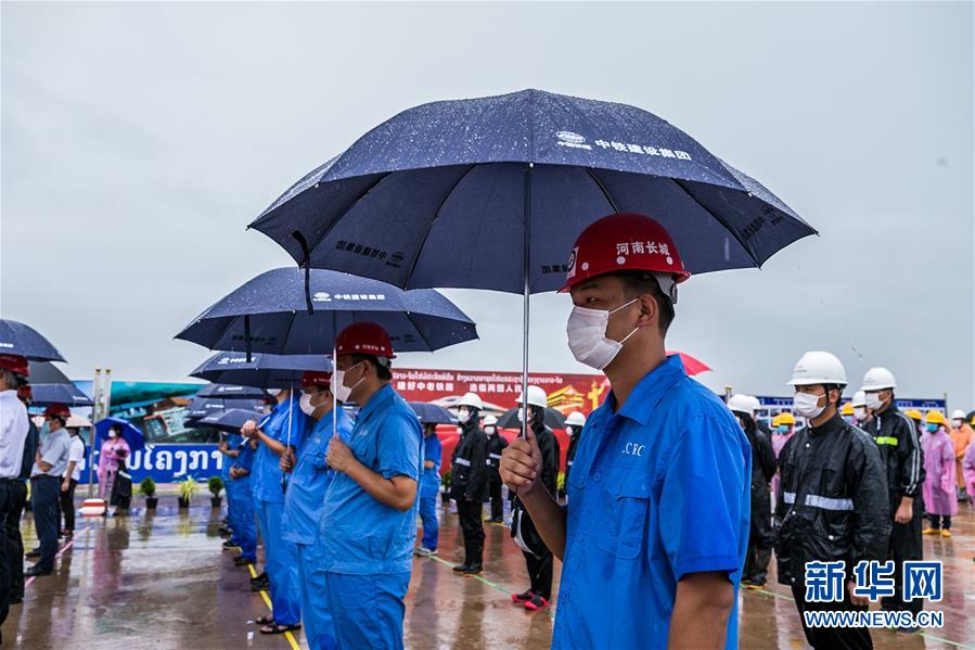 7月3日,中國建設者在老撾首都萬象市塞塔尼縣參加開工典禮。 中老鐵路萬象站開工儀式3日在老撾首都萬象市塞塔尼縣舉行,標志著中老鐵路站房施工全面啟動。 新華社發(凱喬攝)