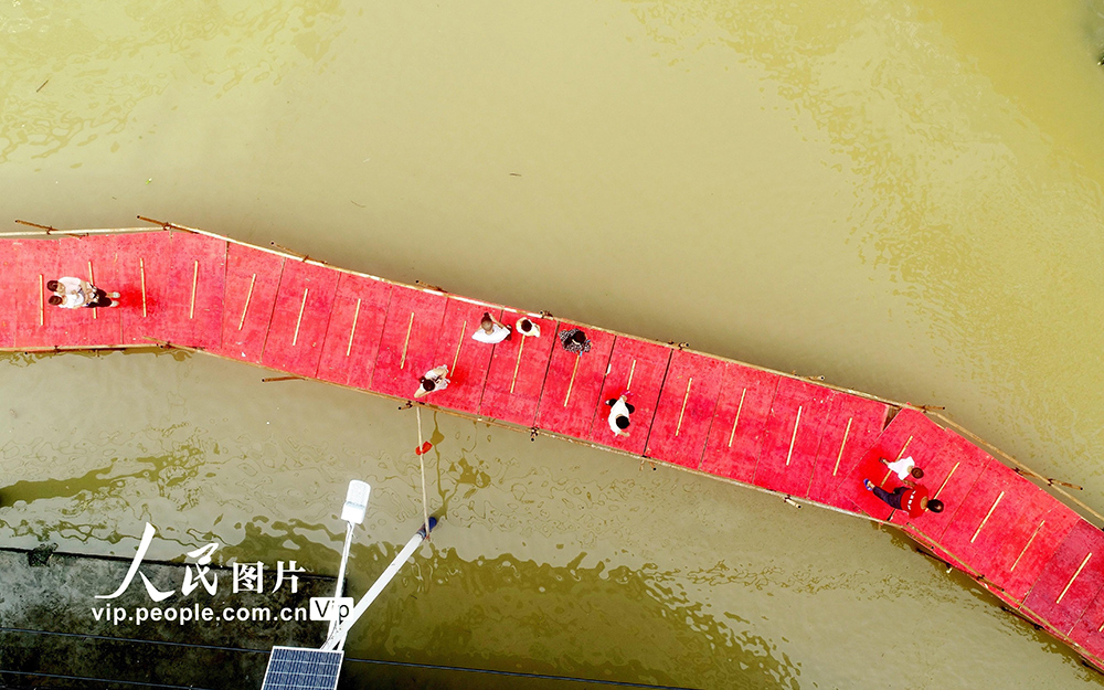 2020年7月9日,江西省九江市湖口縣群眾行走在馬影鎮通往縣城的“便民橋”上。