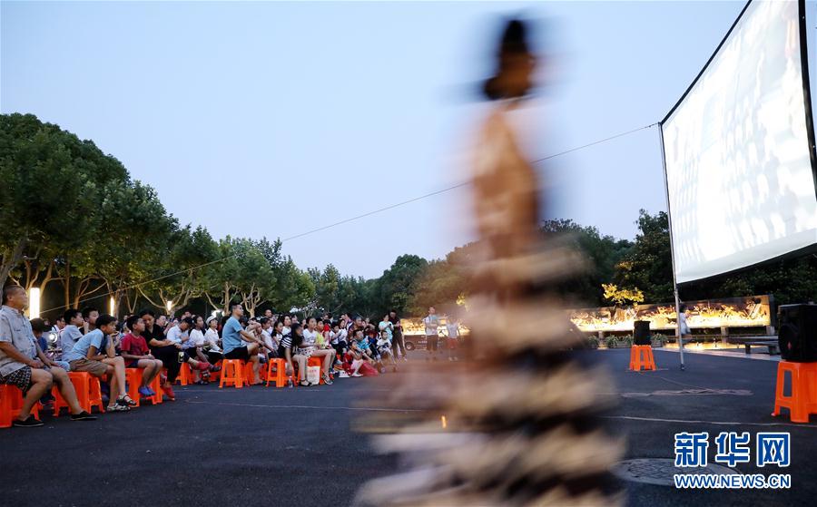 2019年7月7日,人們在上海閔行體育公園內的露天電影院裡看電影。 新華社記者 方? 攝
