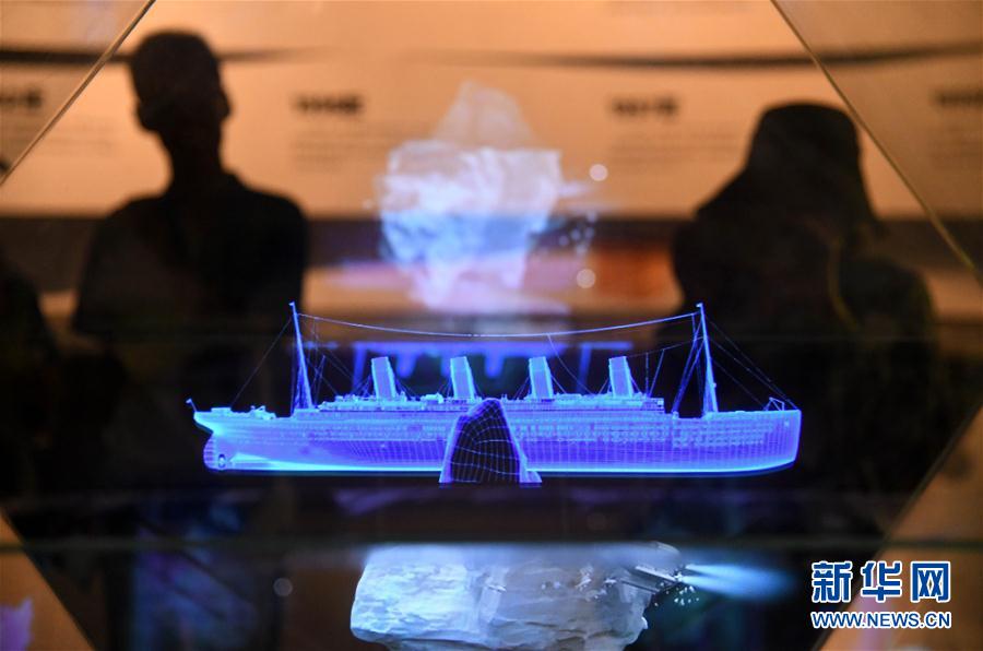 2019年8月28日,參觀者在電影博物館內觀看“泰坦尼克號”數字模型全息演示。當日,2019青島國際影視博覽會舉行青島電影博物館探館活動。 新華社記者 李紫恆 攝