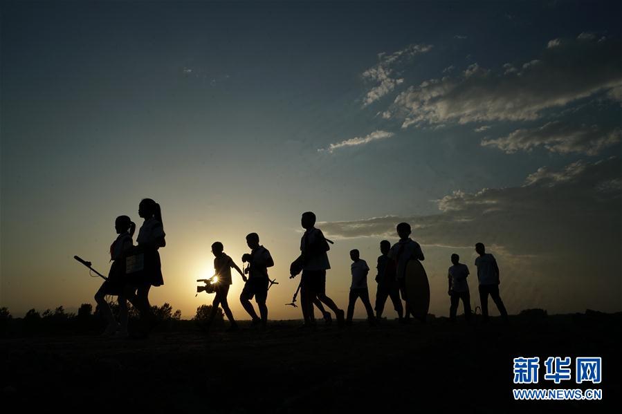 2019年8月15日,《向陽而生》攝制組完成一天的拍攝,行走在返回學校的途中。 新華社記者 牟宇 攝